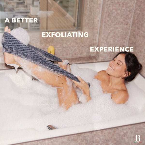 Enjoy a blissful shower experience and take care of your skin with the BLISSAL exfoliating towel.